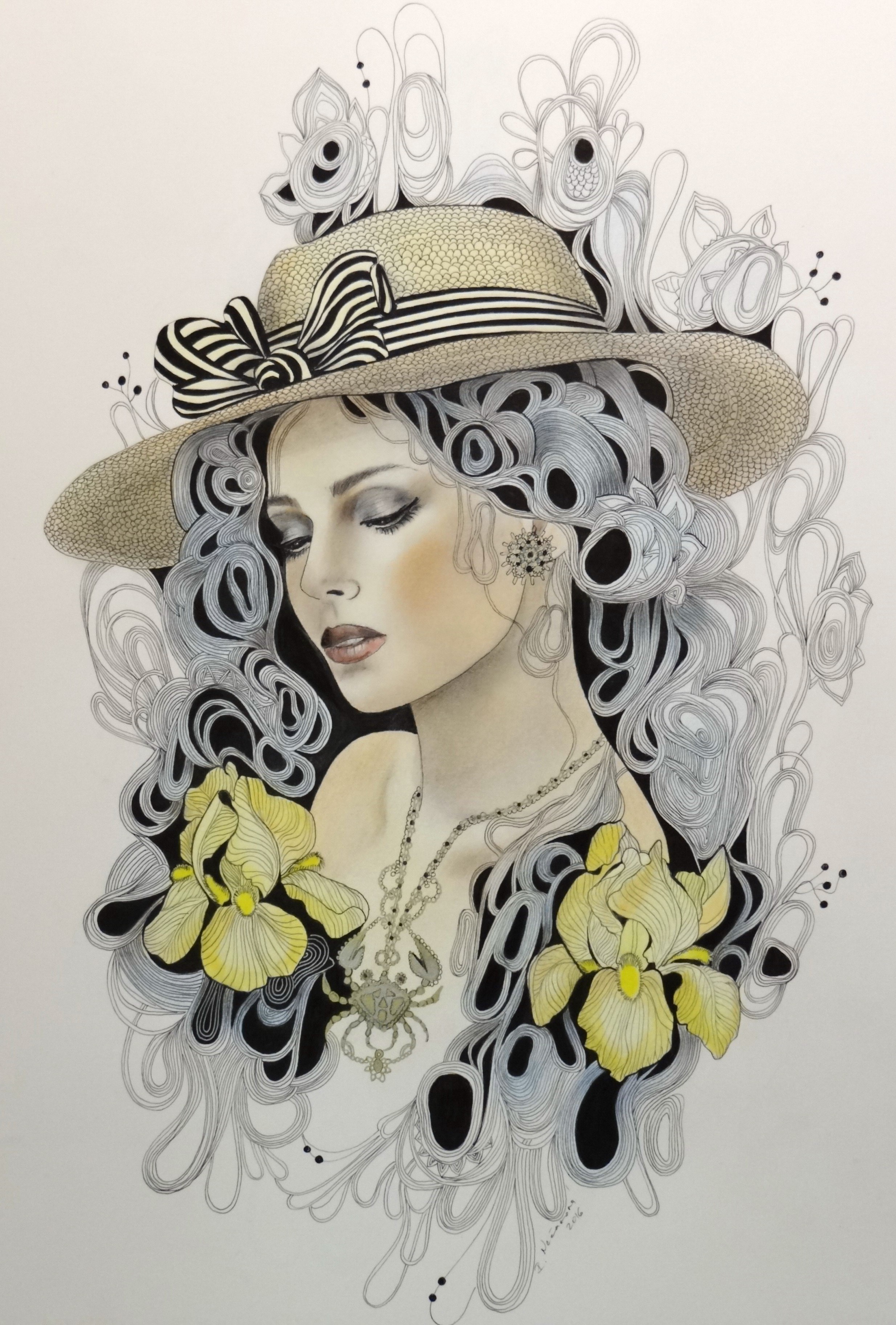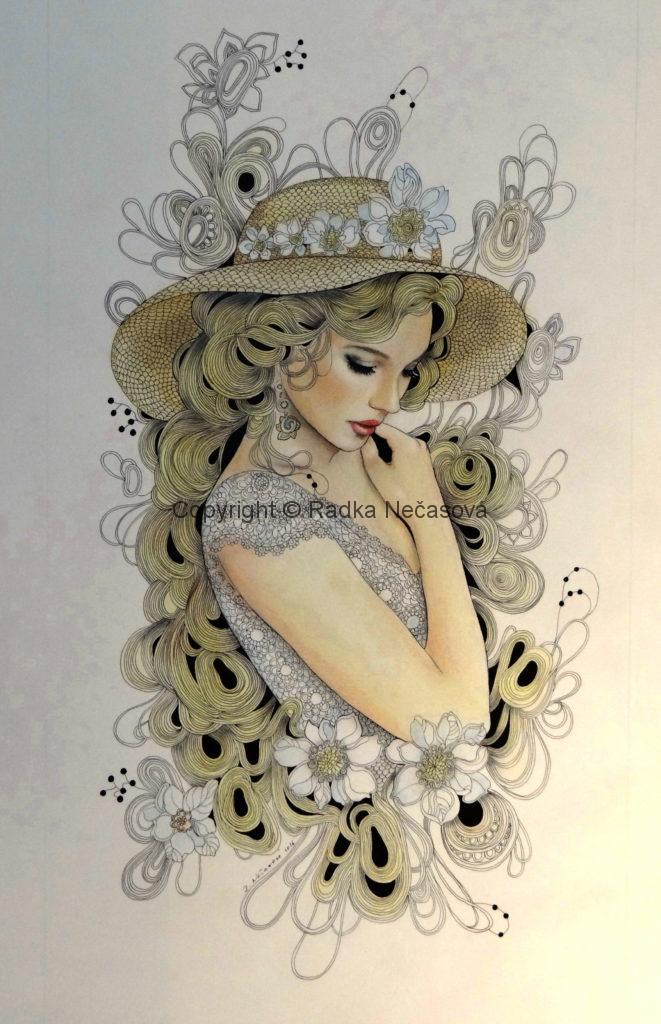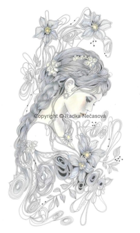 Technika:Kolorovaná perokresba se zlatými nebo stříbrnými doplňky na kvalitním papírovém podkladu.